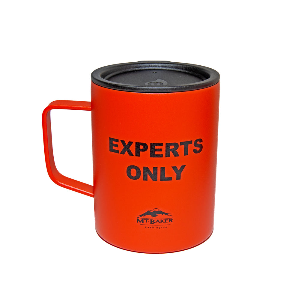 There are those who drink hot beverages and then there are those who do it expertly. If you find yourself in the latter category then Mizu Life's classic Camp Cup adorned with Mt. Baker Ski Area's unforgettable Experts Only slogan is your perfect partner to get up and get going on to catch opening chair on a winter morning. This 18/8 stainless steel insulated camp cup is BPA free and perfect for both cold and warm beverages. Available in either Goofy (right handed handle) or Regular (left handed handle) versions. Sip through lid included.